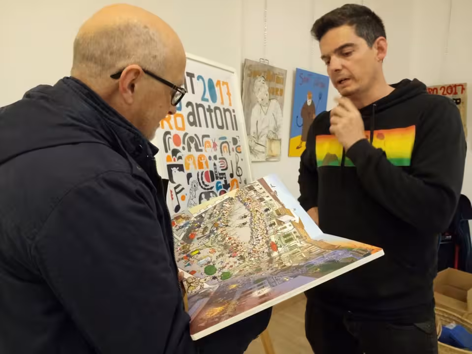 Se trata de un libro auto editado por estos dos maestros con nueve ilustradores del mundo del cómic nacidos o residentes en Mallorca que relatan gráficamente la fiesta de Sant Antoni en Mallorca.
