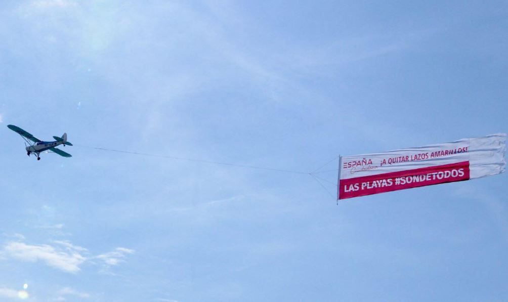 'España Ciudadana' fleta una avioneta para promover la retirada de lazos amarillos de las playas catalanas