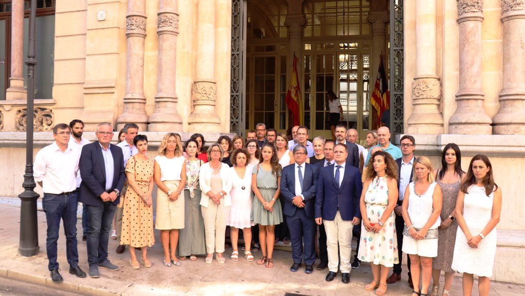 Miembros del Parlament, encabezados por su presidente, Vicenç Thomàs, han guardado este martes un minuto de silencio ante el edificio de la Cámara autonómica por los guardias civiles asesinados por ETA en Palmanova el año 2009, con motivo del décimo aniversario del atentado.