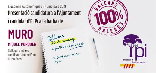 El Pi presentará el próximo lunes 20 de mayo su candidatura al Ajuntament de Muro y a su número uno en la lista para concurrir a las elecciones municipales del próximo 26 de mayo.