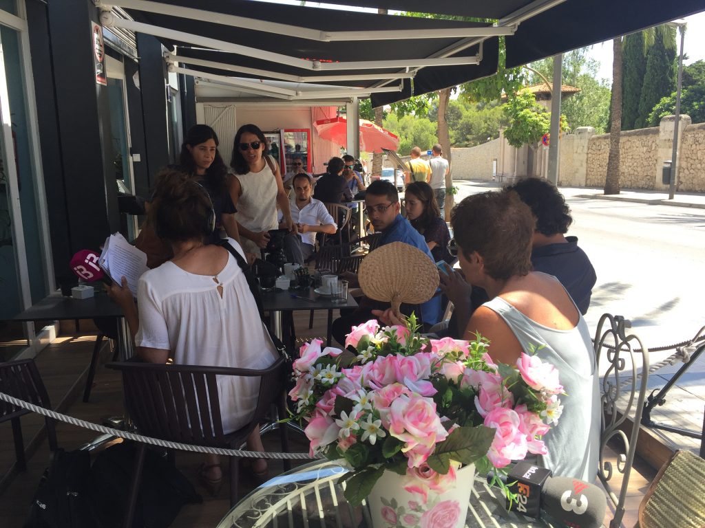 Ante el retraso de la cita, los peridistas y gráficos concentrados en Marivent han aprovechado el receso para salir a comer en las inmediaciones del palacio mientras comentaban la jugada.