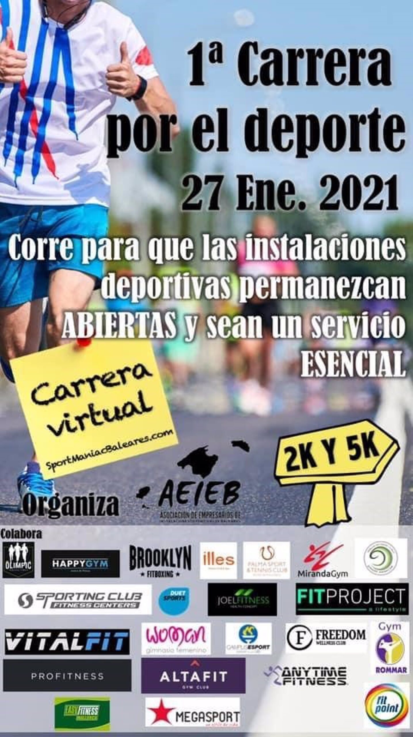 La Asociación de Empresarios de Instalaciones Deportivas (AEIEB) ha convocado el próximo miércoles 27 de enero una carrera virtual para reclamar que las instalaciones deportivas sigan abiertas y ser considerados servicio esencial.