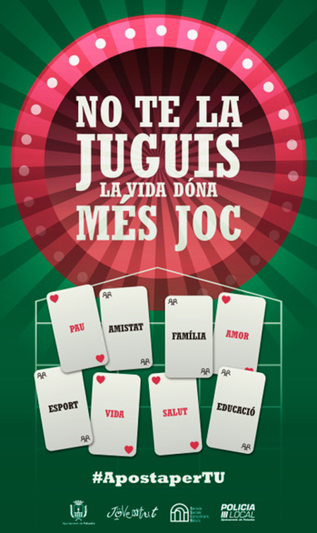 L'Ajuntament de Felanitx con la comisión de coordinación del Plan Municipal de Prevención de Drogodependencias, formada por el técnico de Servicios Sociales, el Policía Tutor y la Tècnica de Juventud, ha realizado esta campaña de concienciación sobre el gran problema que suponen las drogas y los juegos de apuestas para la sociedad en su conjunto y especialmente en los más jóvenes.