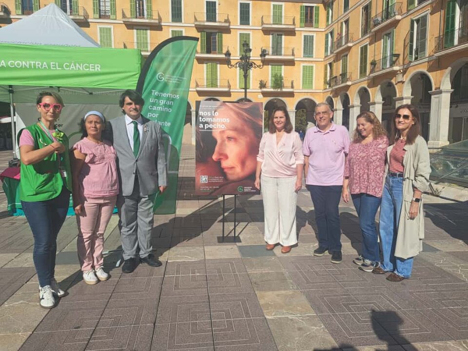 La consellera de Salud, Manuela García, acompañada por el presidente de la AECC en Baleares, José Reyes, ha visitado esta mañana, con motivo del Día Mundial contra el cáncer de mama, las diferentes mesas informativas organizadas por la Asociación española contra el Cáncer. Este domingo, 19 de octubre, se celebra el Día Mundial contra el Cáncer de mama con el objetivo de recordar la importancia de la prevención y la detección precoz