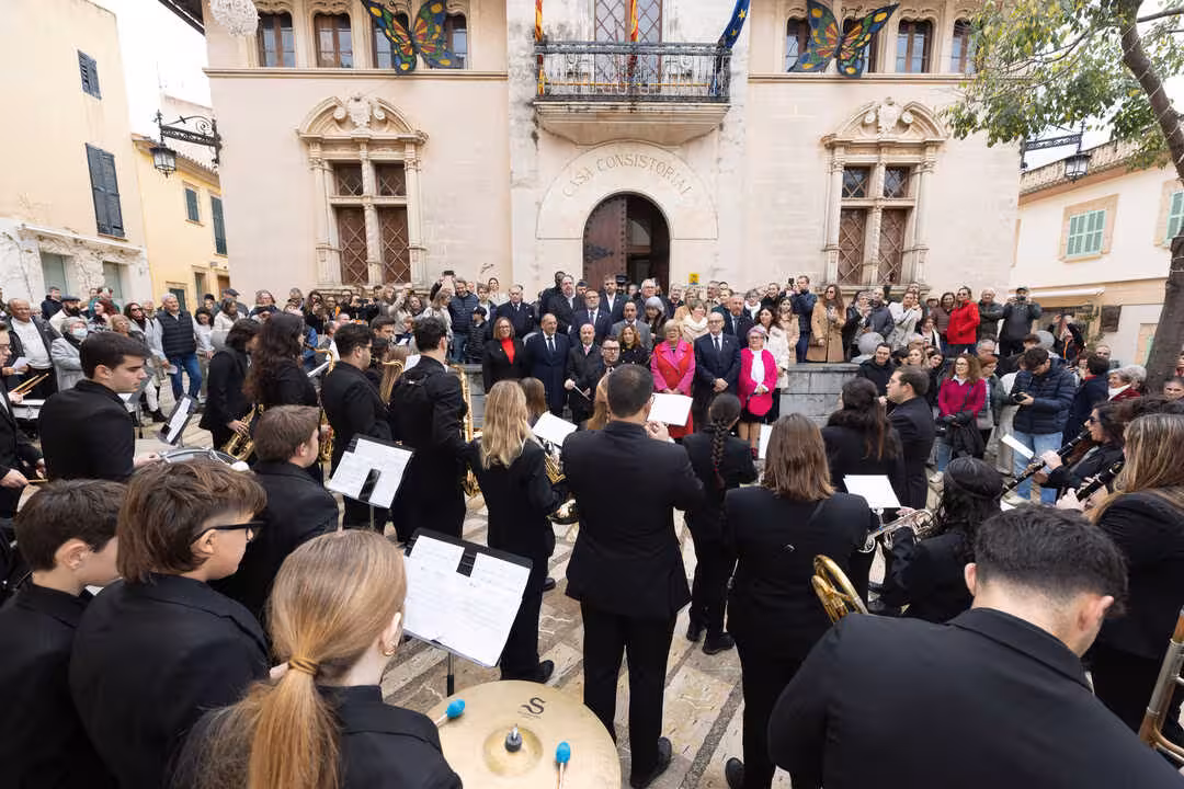 Al acabar el oficio religioso, las autoridades y los asistentes se han dirigido hacia la Sala, acompañados por la Banda Municipal de Alcúdia, dirigida por Jaume Garcia Serra. Ante el edificio, se han interpretado el himno oficial de Mallorca, La Balanguera, y el himno oficial de Alcúdia, en un momento cargado de simbolismo y sentimiento colectivo.