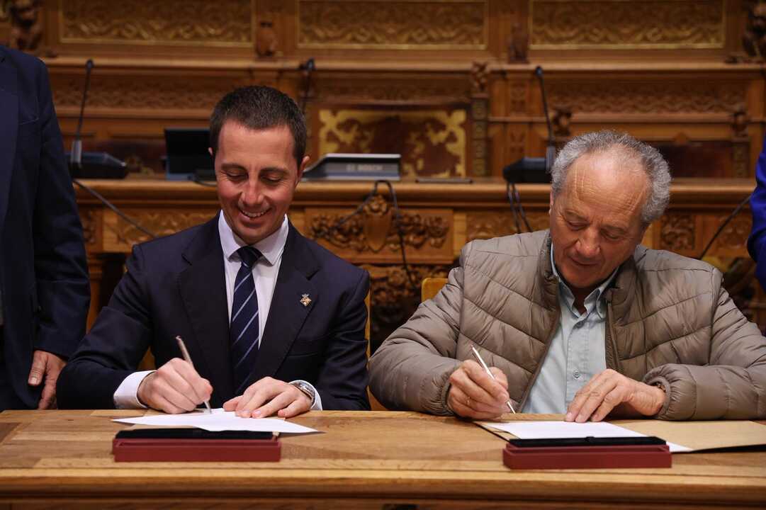 El presidente del Consell de Mallorca, Llorenç Galmés, acompañado del consejero de Presidencia, Toni Fuster, ha firmado hoy los convenios con 45 ayuntamientos de Mallorca que recibirán financiación para reforzar y ampliar sus políticas locales de juventud.