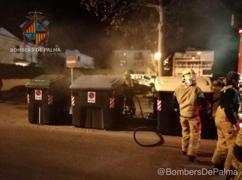 Arden dos contenedores frente al Colegio Balmes de Palma