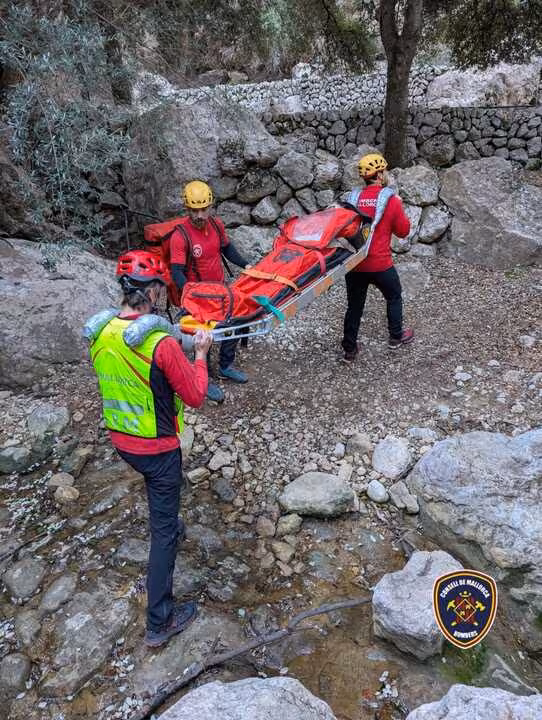 Efectivos de los Bomberos de Mallorca han rescatado y trasladado este domingo a un hombre al Hospital Universitario Son Espases después de que sufriera una caída en el barranco de Biniaraix.