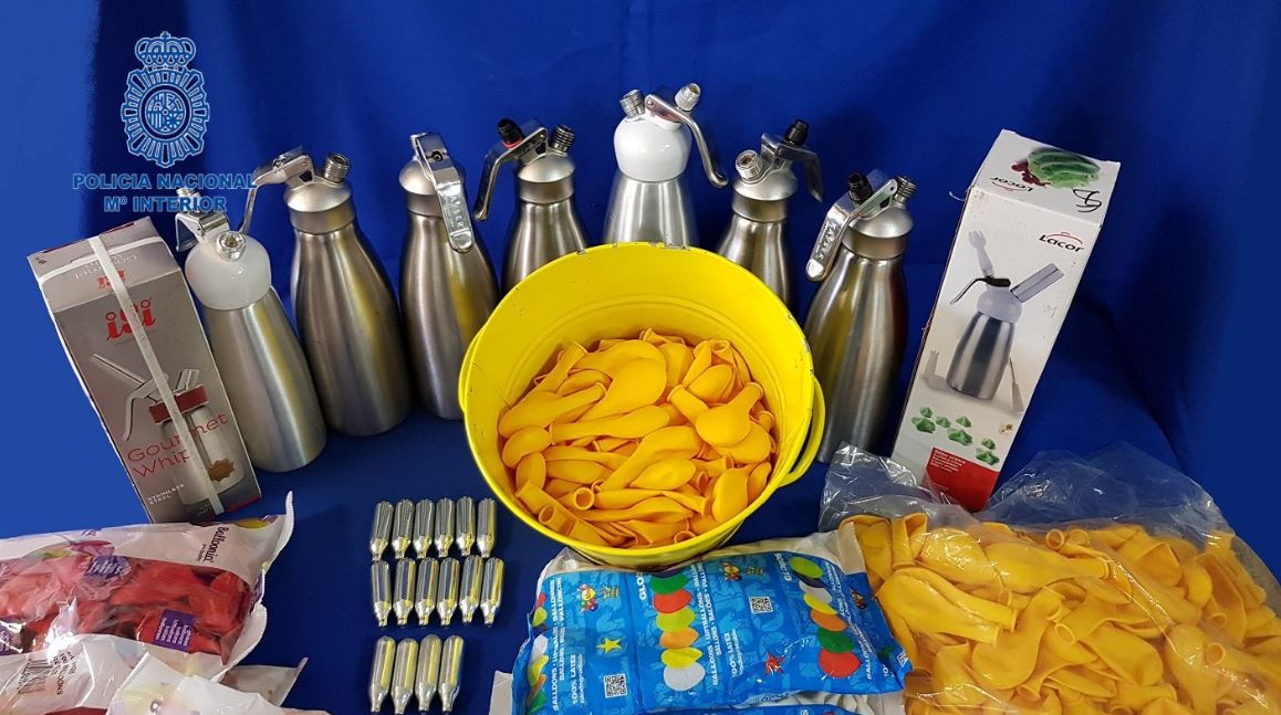 Esta inspección dio como resultado la incautación de diversas dosis de 'gas de la risa', así como útiles para la venta y distribución de este gas a los clientes por un valor de 5 euros por dosis, las cuales eran consumidas mediante inhalación de globos, multitud de los cuales también fueron intervenidos.