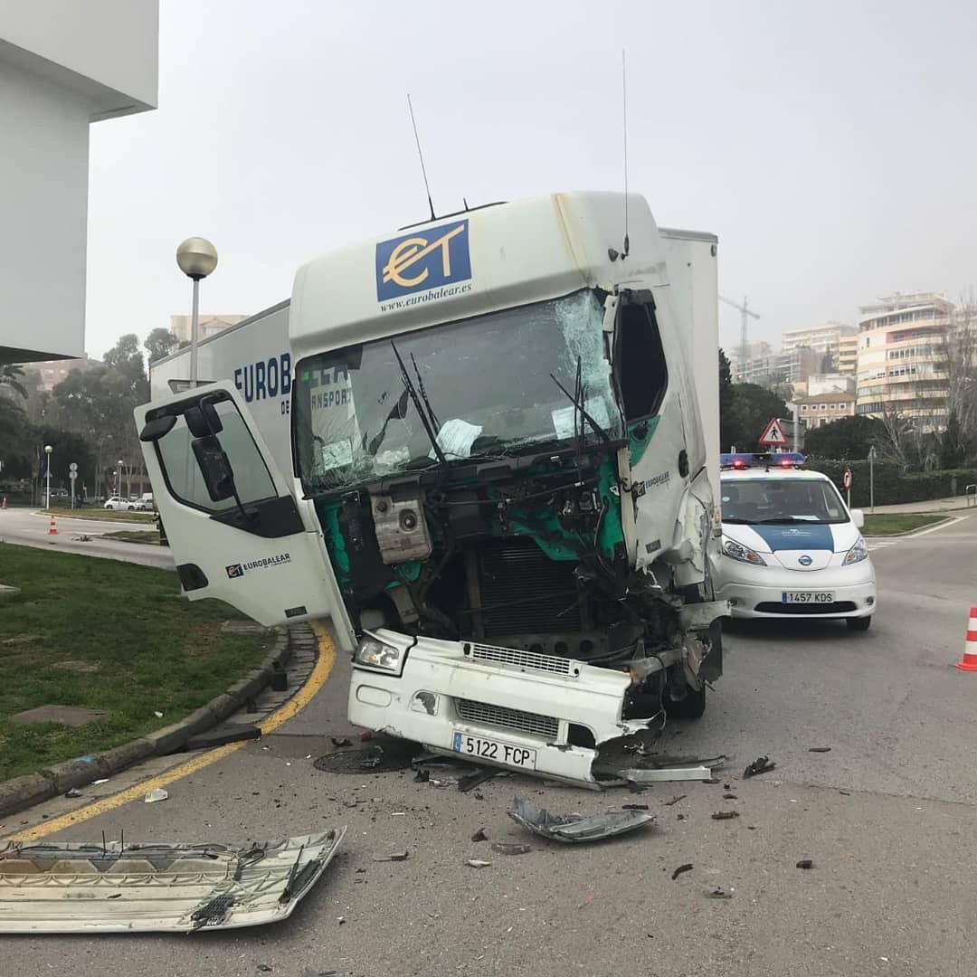 Dos personas han resultado heridas al chocar un tráiler y un autobús de la EMT este viernes en Palma.
