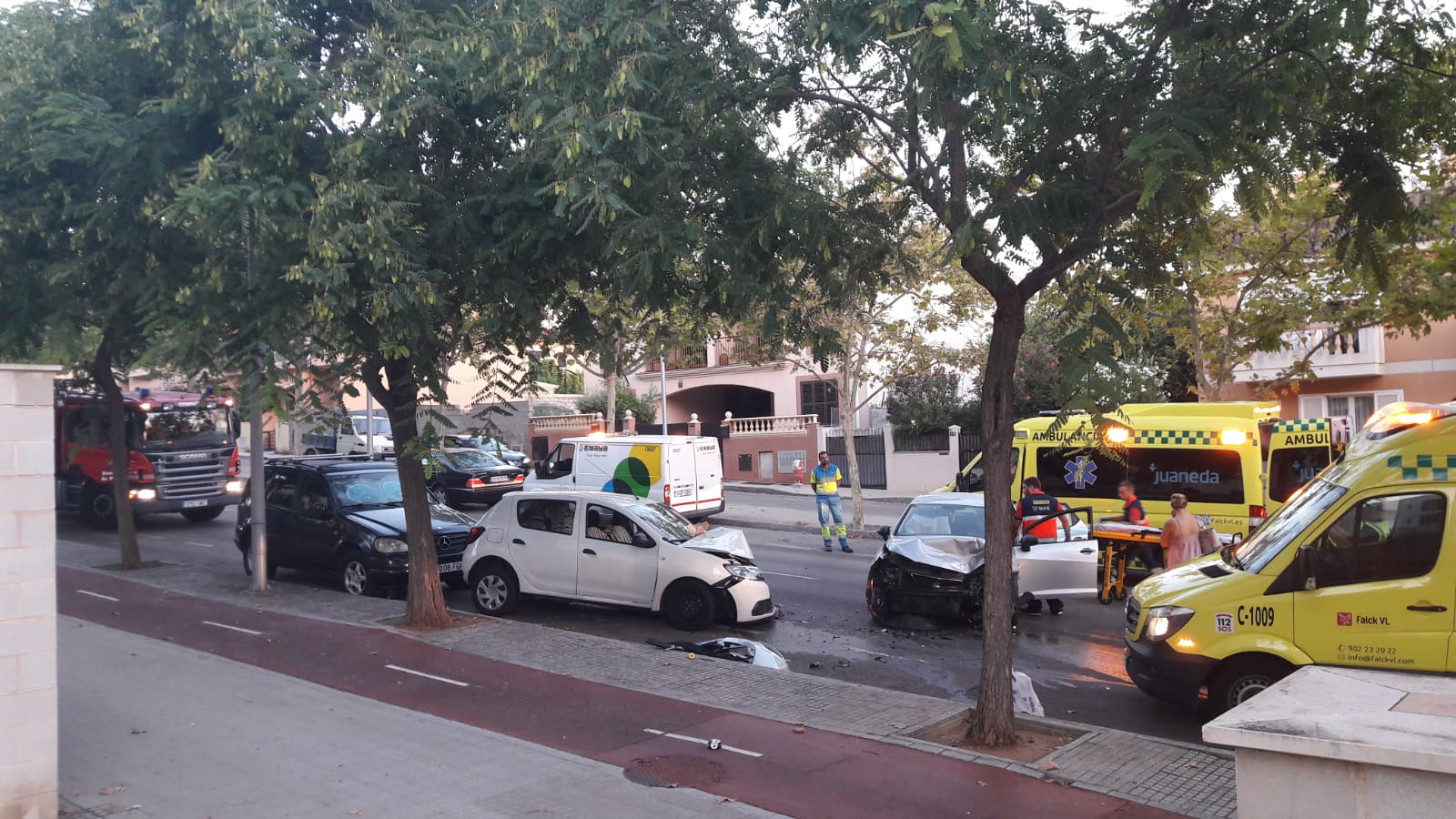 Un accidente en Camí dels Reis (entre la zona de colegios y Son Moix) de tres coches ha tenido como resultado 2 heridos. A la zona han acudido los bomberos de Palma y dos ambulancias para atender a los heridos.