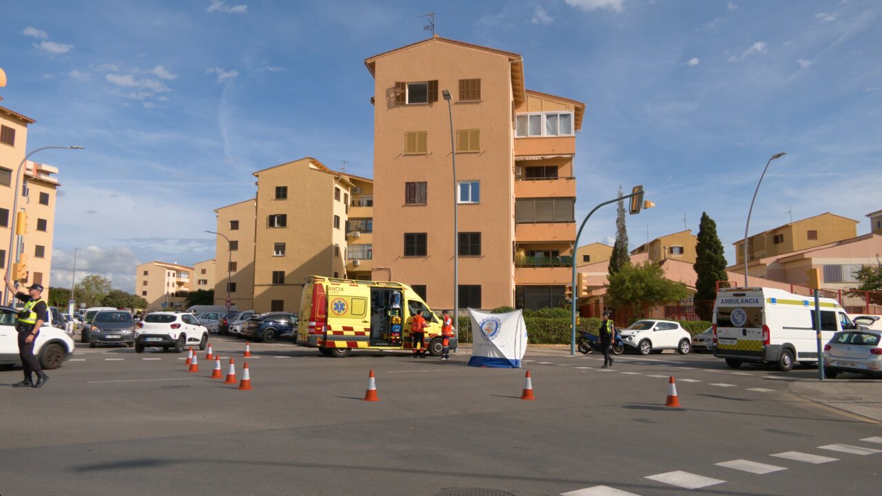 Un motorista de setenta años ha fallecido este mediodía en la calle Gremi de Tintorers, en Sa Indioteria, tras chocar contra una ambulancia privada.