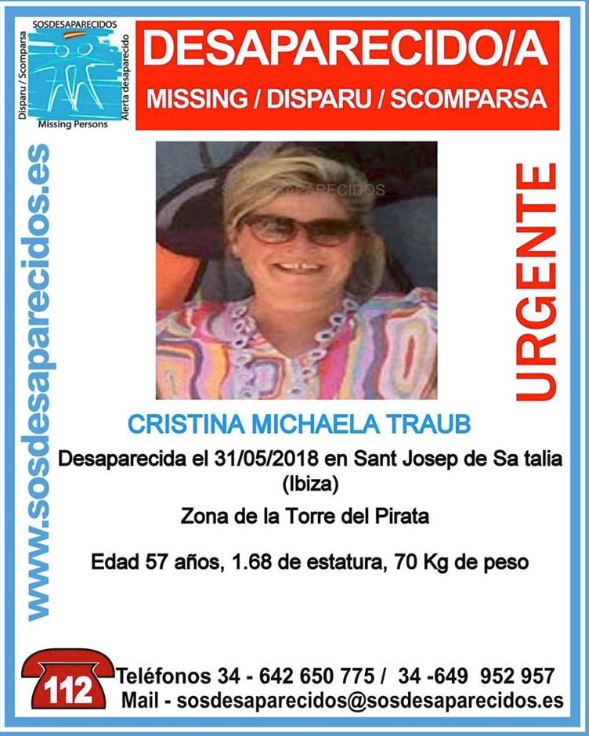 La mujer desapareció el pasado jueves por la tarde en el municipio de Sant Josep. La búsqueda se centró al principio en los acantilados de la zona y el mar y, a medida que transcurrieron los días, se amplió el rastreo por tierra, incrementándose el radio de acción alrededor del vehículo de la desaparecida, hallado también cerca de la Torre de Es Savinar. En la zona se habían encontrado los zapatos y otros efectos personales de la mujer.