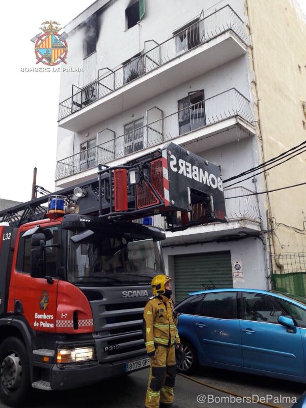 Los Bombers de Palma han sofocado en la tarde de este lunes un incendio originado en una nevera que se ha prendido fuego en un edificio abandonado.