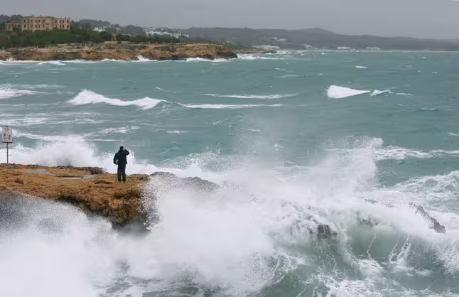 En puntos de Mallorca y Menorca, Del Campo prevé que el oleaje pueda alcanzar los 7 metros de altura durante la noche del sábado y la jornada del domingo. Incluso no descarta que alguna ola pueda llegar individualmente a los 14 metros de altura.