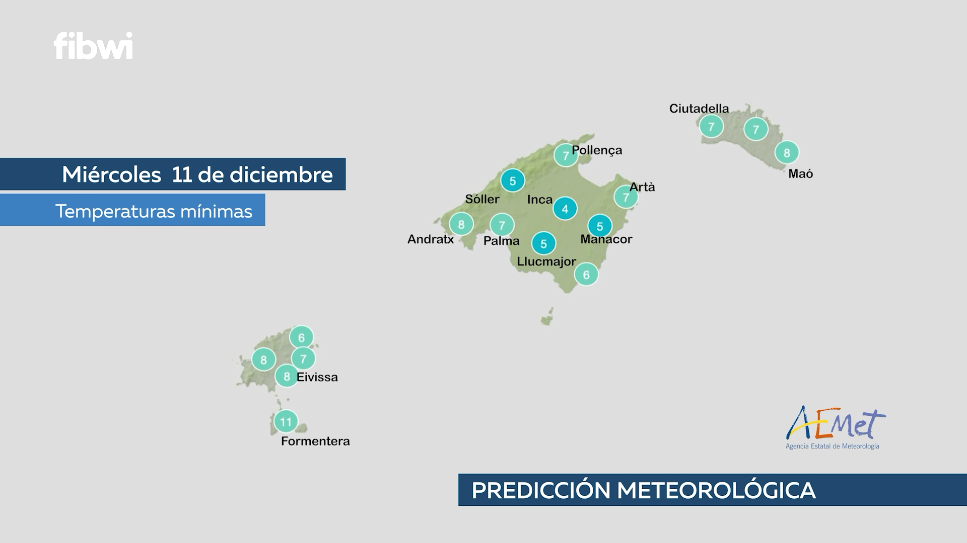 Especialmente, bajarán durante la noche por lo que es posible que se produzcan heladas débiles en zonas altas de la Serra de Tramontana.