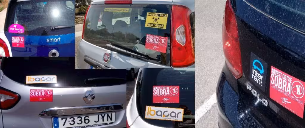 La organización independentista Endavant OSAN (Organización Socialista de Liberación Nacional) ha pegado en los últimos días más de mil pegatinas con el lema "Este coche sobra" en diferentes vehículos de alquiler de Mallorca. Una acción reivindicativa que busca luchar contra la saturación turística.