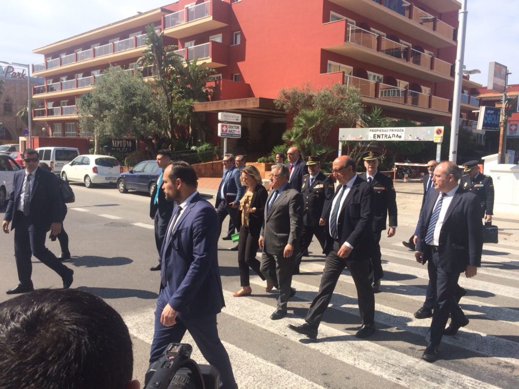 El ministro ha llegado a la Playa de Palma antes de las 11.00 horas y en su paseo hasta el hotel donde ha presentado dicho plan ha sido acompañado por la delegada del Gobierno en Baleares, Maria Salom y el director general de la Policía, Germán López Iglesias.