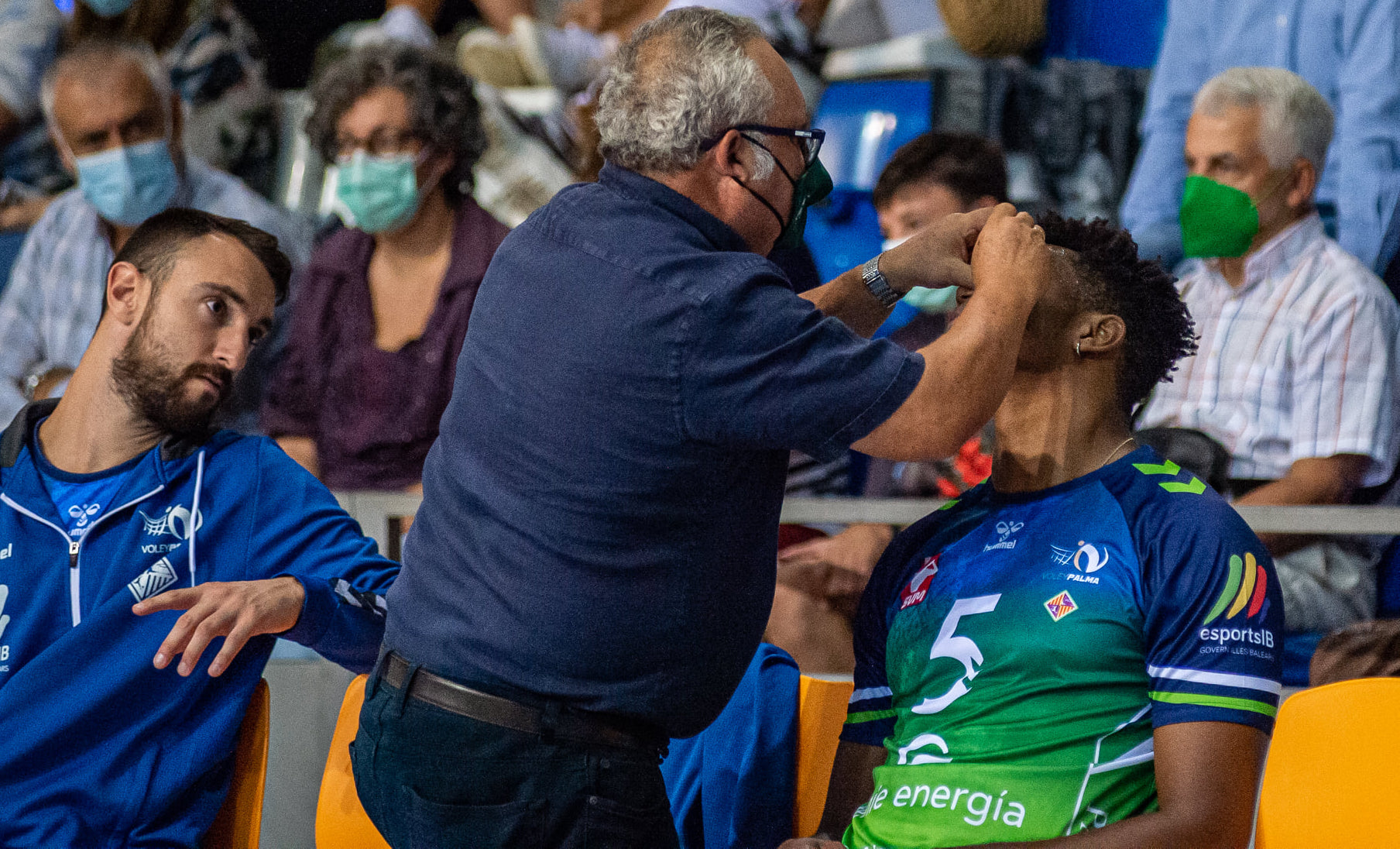 El central del Feníe Energía Mallorca Voley Palma sufrió un duro golpe en la cara el pasado fin de semana en el partido contra Guaguas.