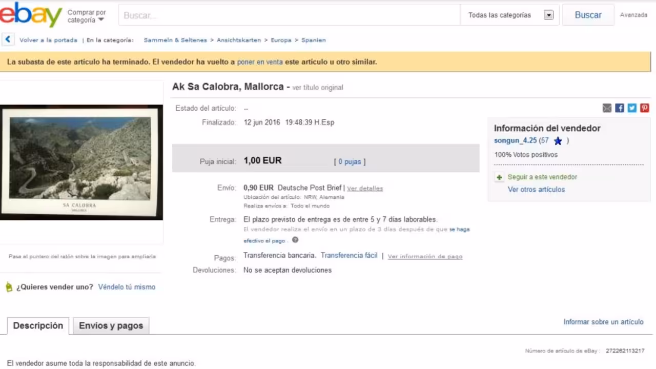 Se venden piedrecitas de la playa de Sa Calobra a través de eBay